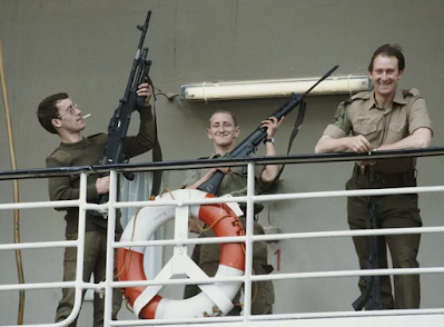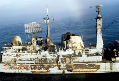 O conquistador submarino britânico HMS afundou o cruzador argentino General Belgrano em 2 de maio de 1982. 300 tripulantes foram perdidos com o navio. Depois disso, os militares argentinos mantiveram seus navios no porto.
