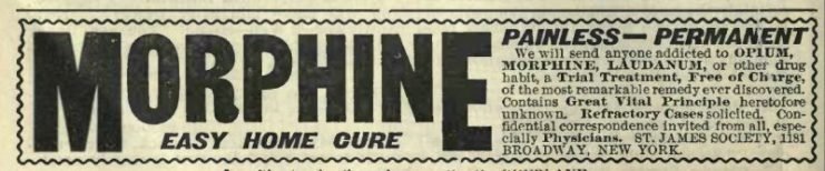 A mistura prometia curar vício em morfina, depressão, alcoolismo e até impotência. Na prática, produzia um forte efeito estimulante.